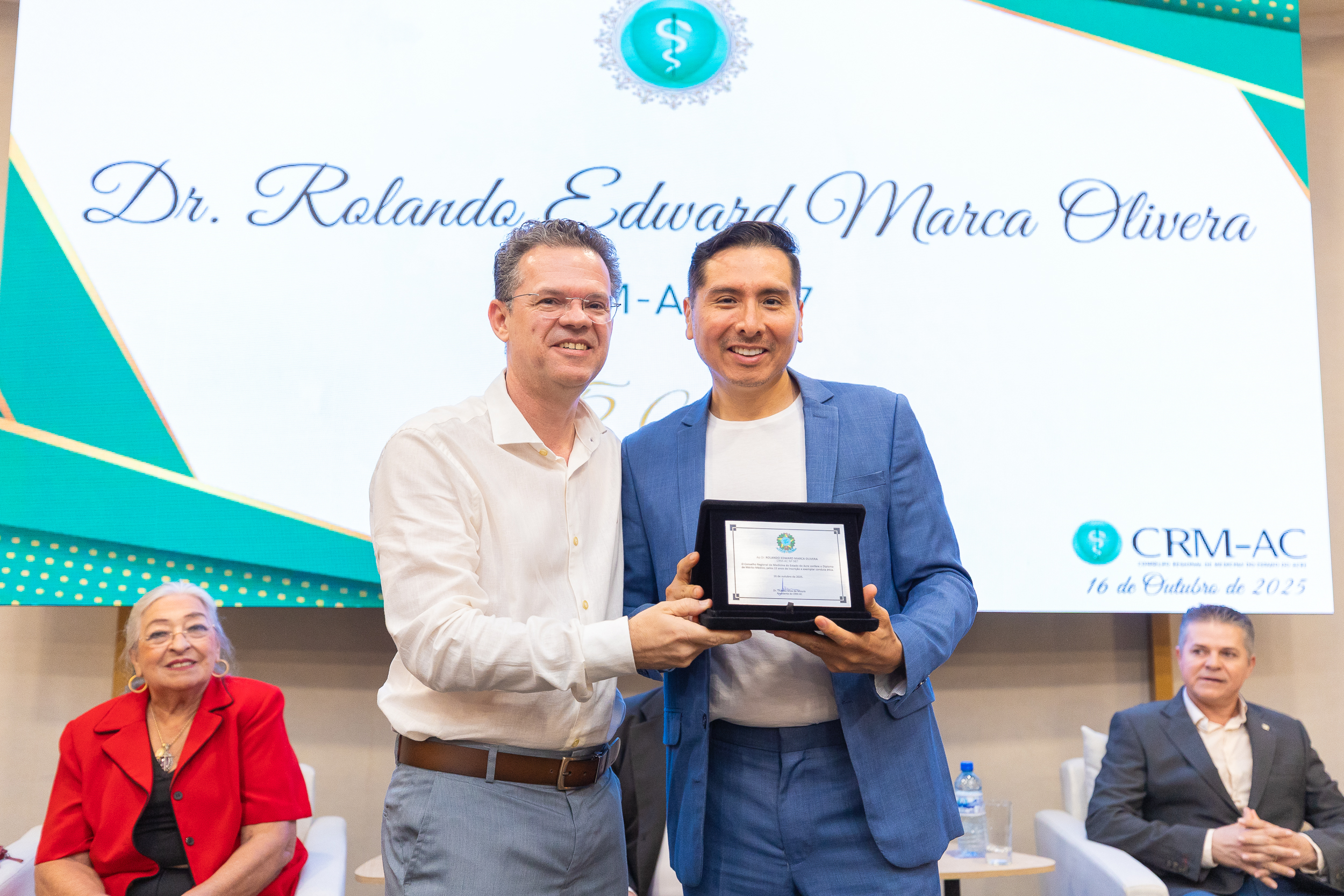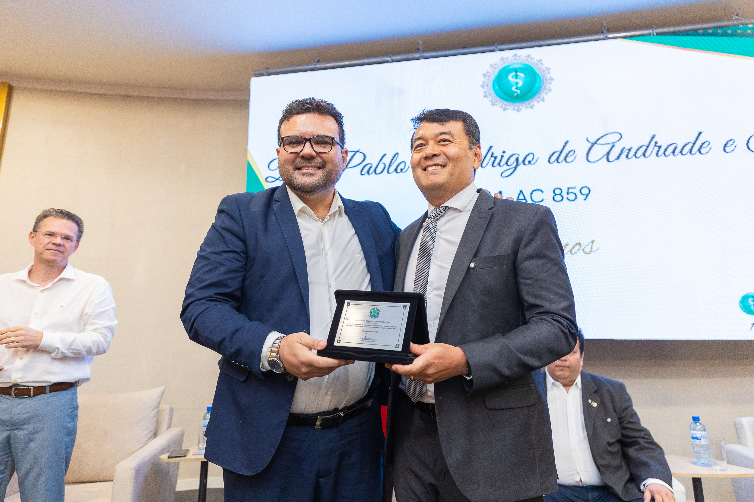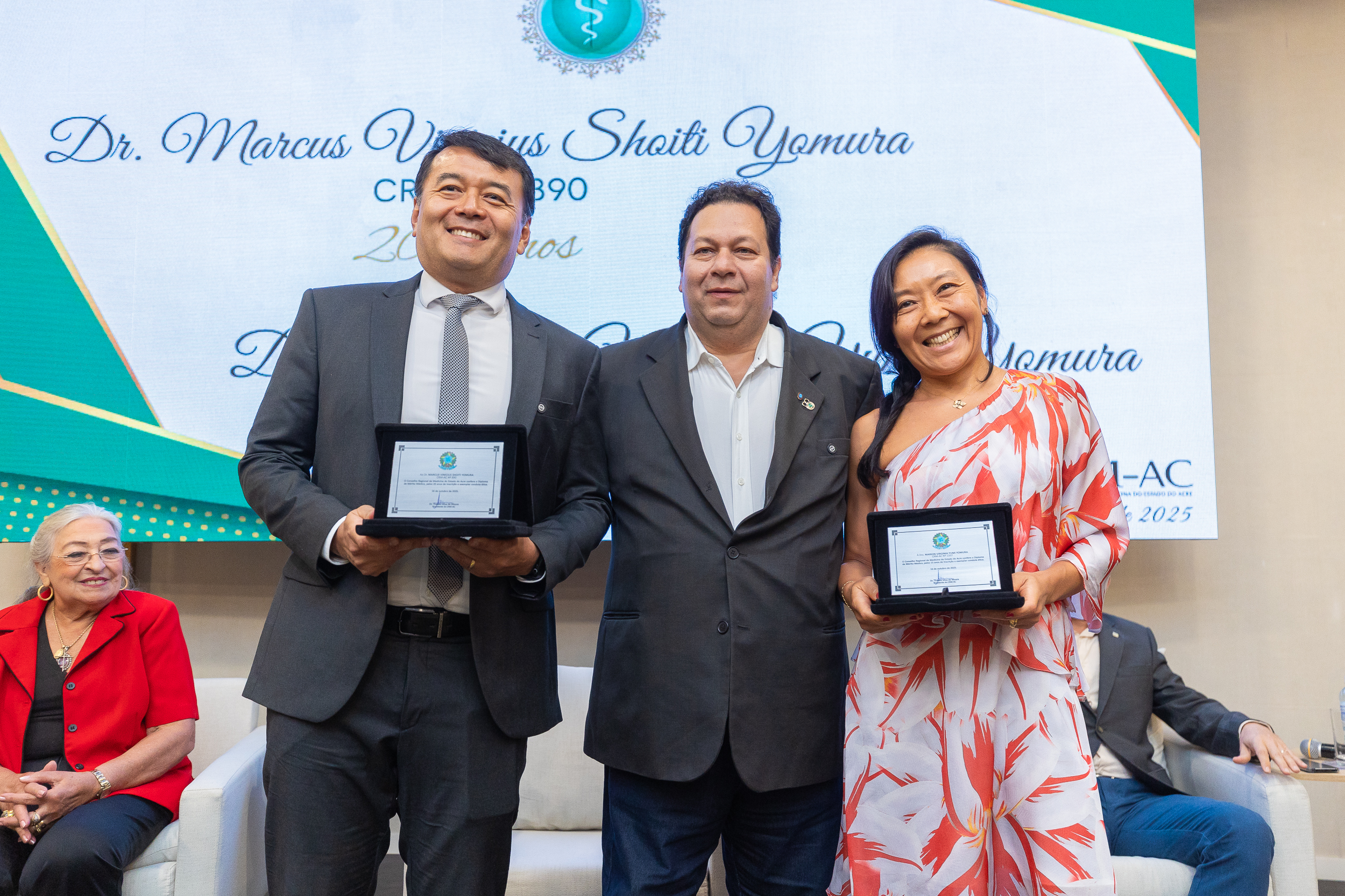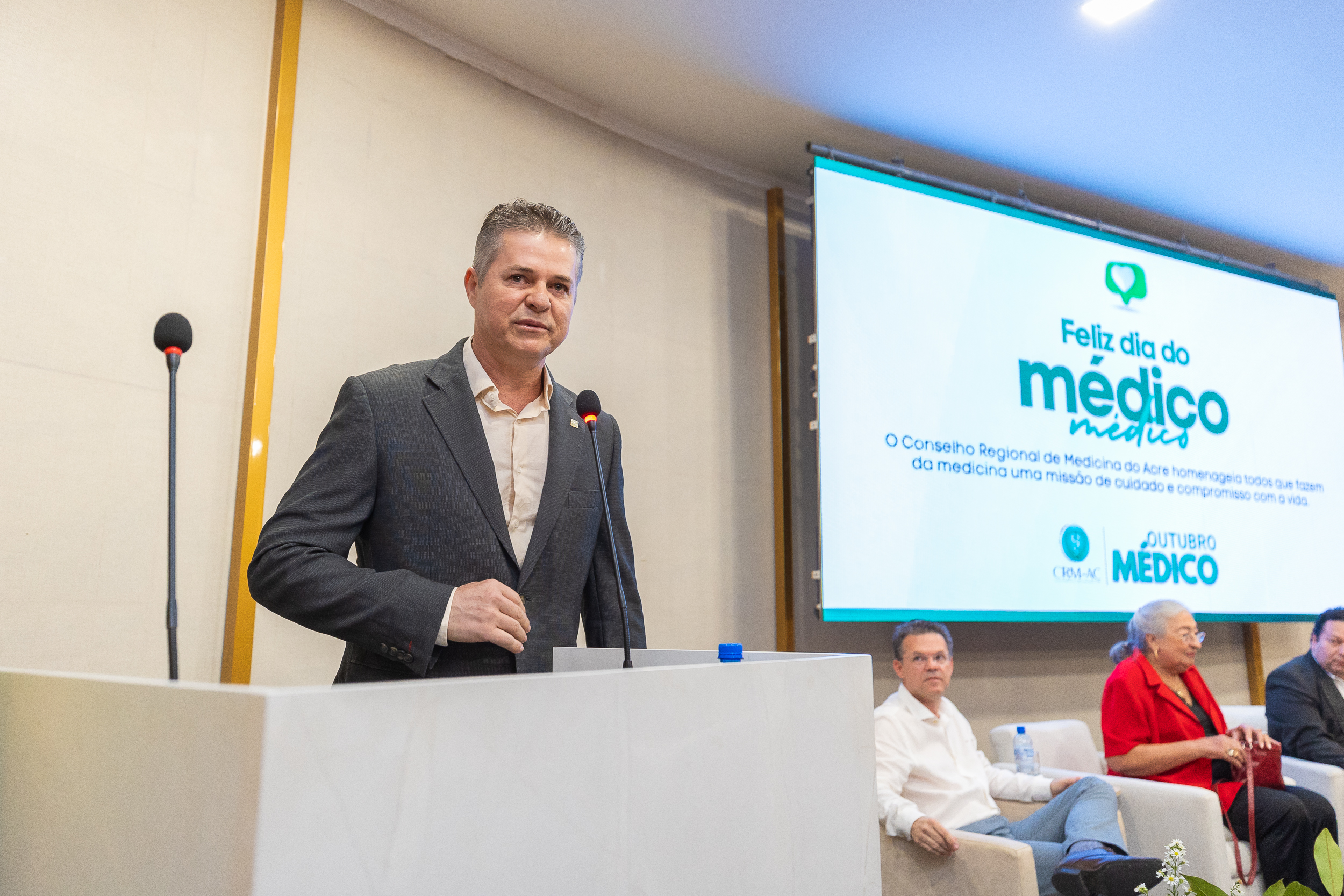 A cerimônia contou com a presença do presidente do CRM-AC, Dr. Thadeu Moura, do 1º secretário Dr. Alan Areal, representando a conselheira federal Dra. Dilza Ribeiro, da conselheira titular Dra. Maria das Graças Ribeiro de Moura Leite, do Dr. Osvaldo de Sousa Leal Júnior, representando o Sindmed, e dos presidentes da Unimed Rio Branco, Dr. Marcus Vinicius Shoiti Yomura, e do Sicoob Uni Acre, Dr. Arnaldo Thomaz Cordeiro Barbosa.