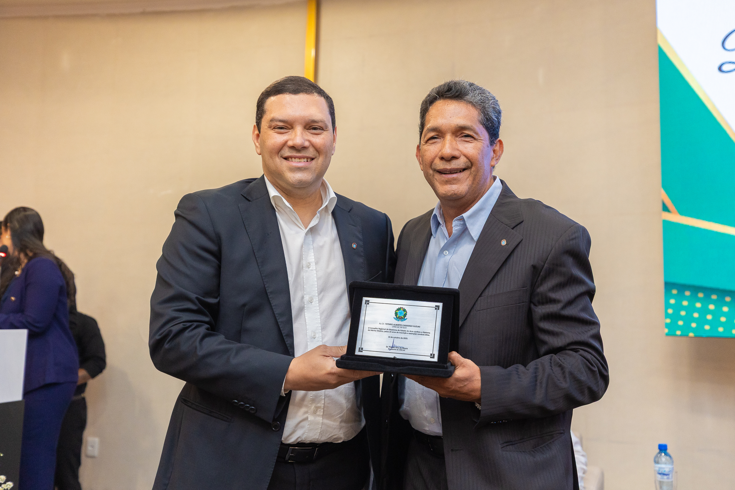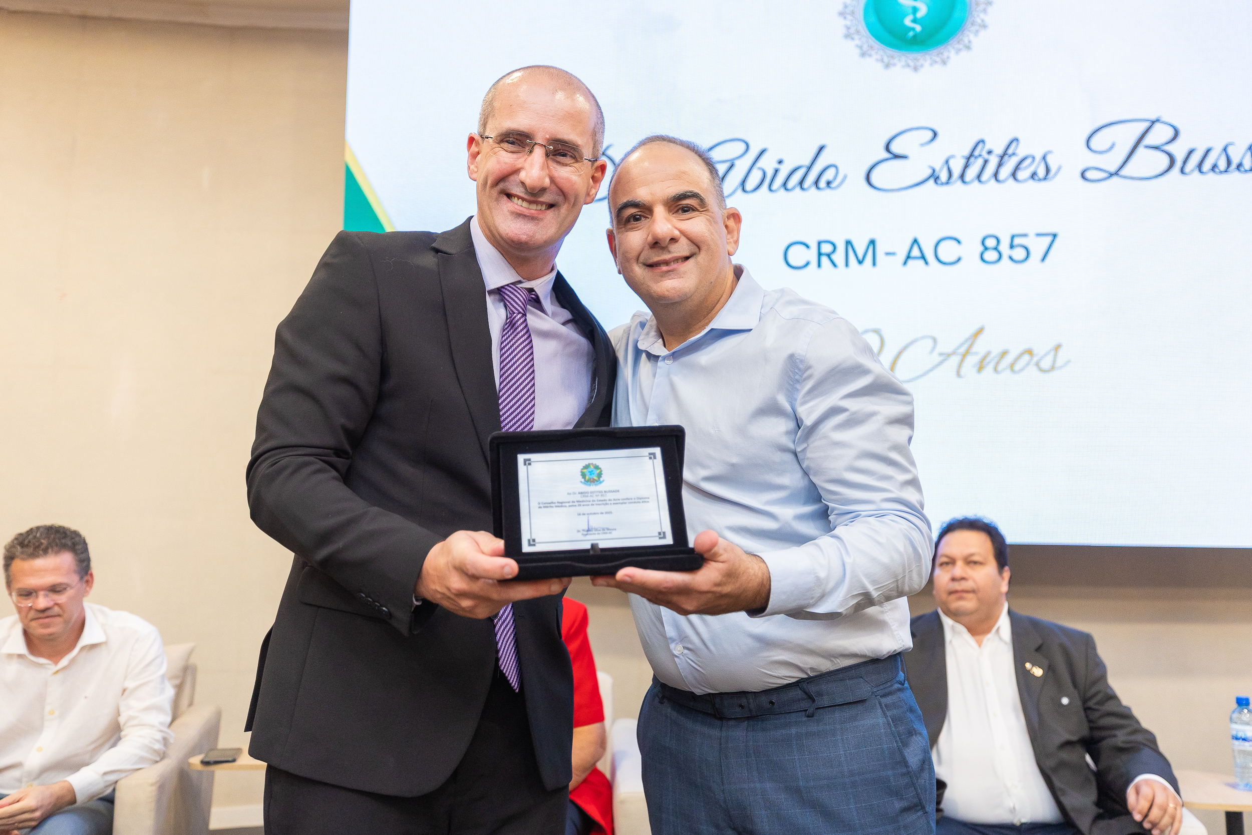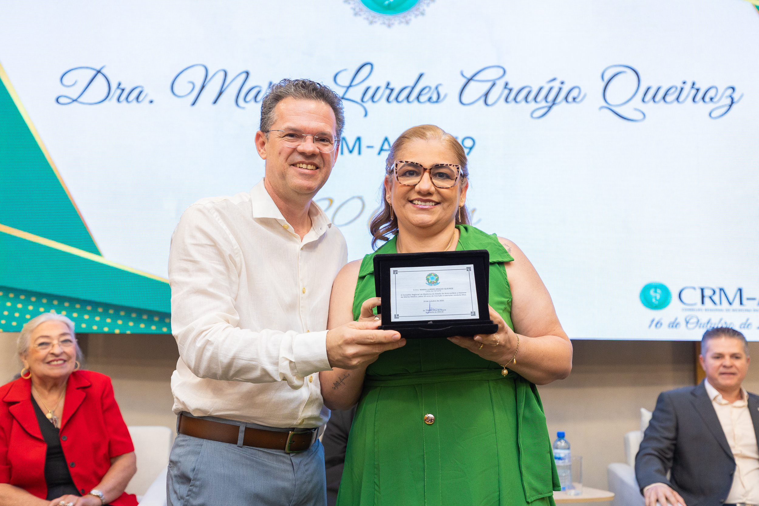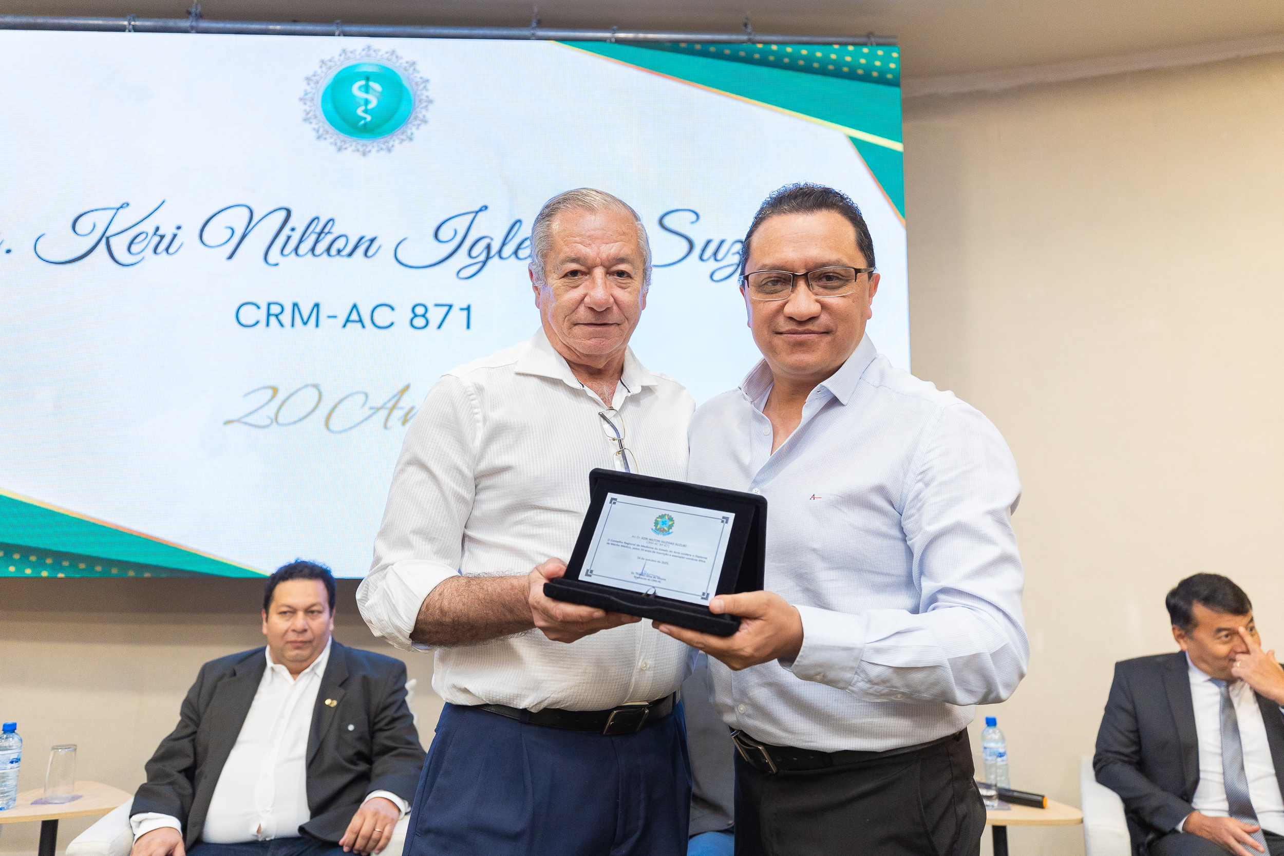 A cerimônia contou com a presença do presidente do CRM-AC, Dr. Thadeu Moura, do 1º secretário Dr. Alan Areal, representando a conselheira federal Dra. Dilza Ribeiro, da conselheira titular Dra. Maria das Graças Ribeiro de Moura Leite, do Dr. Osvaldo de Sousa Leal Júnior, representando o Sindmed, e dos presidentes da Unimed Rio Branco, Dr. Marcus Vinicius Shoiti Yomura, e do Sicoob Uni Acre, Dr. Arnaldo Thomaz Cordeiro Barbosa.