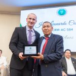 Em seu discurso, Dr. Thadeu Moura fez um relato emocionado sobre a trajetória da medicina no Acre, destacando o crescimento do CRM-AC e a dedicação de todos os profissionais. “Esse momento é de muita satisfação para todos nós. Ser médico talvez seja uma das profissões mais gratificantes que existe. Acompanhamos desde o primeiro atendimento na sala de parto até a vida adulta e o envelhecimento. Estar presente em todas as fases da vida é gratificante para todos nós”.